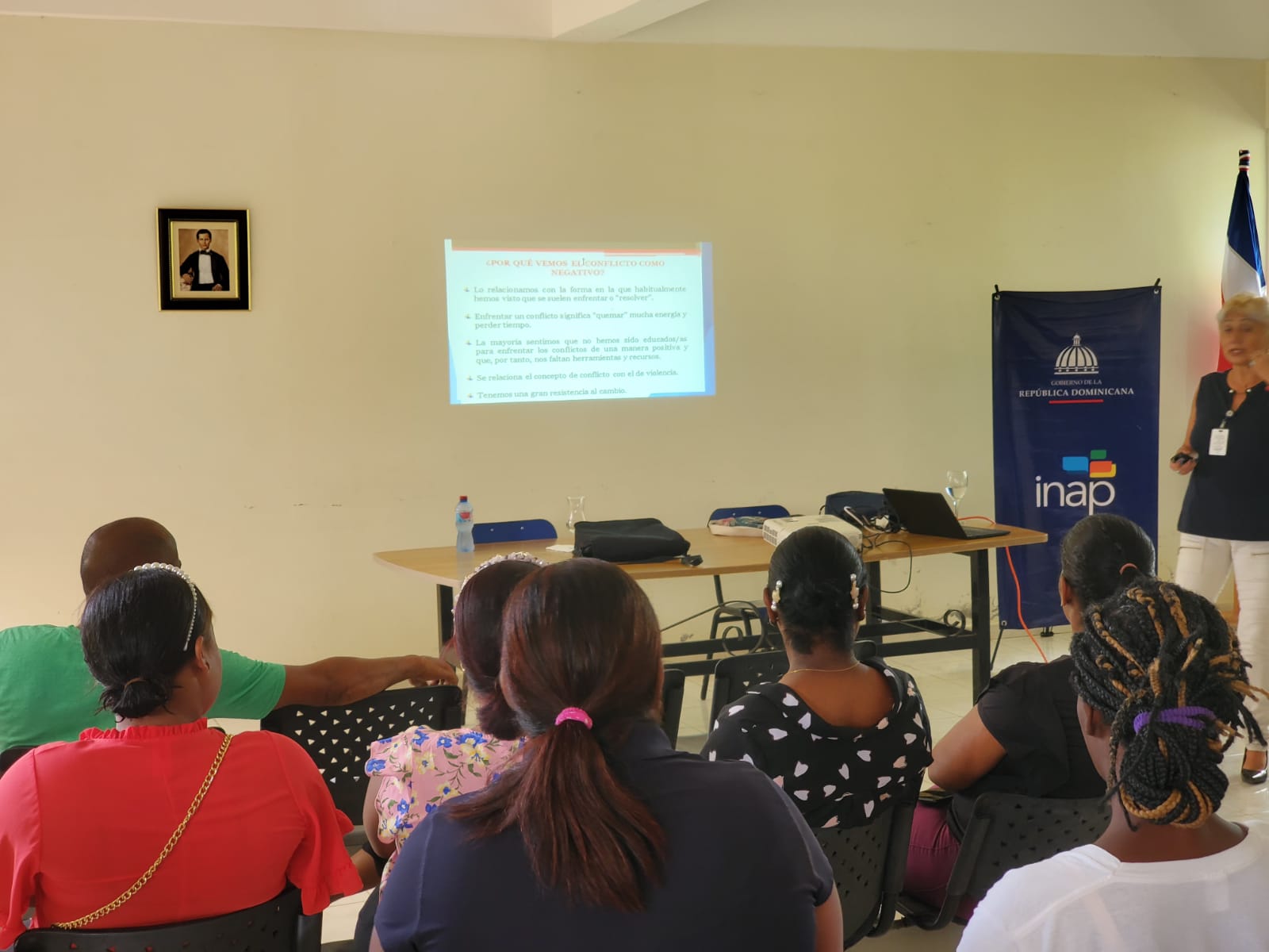 El taller estuvo a cargo de la profesora Alexandra Moya, en representación del Instituto Nacional de Administración Publica (INAP), cuyas funciones están orientadas a formar y a desarrollar capacidades en los servidores públicos y en los ciudadanos que aspiren ingresar al servicio público, en procura de colaborar con los organismos públicos para brindar un mejor servicio y funcionamiento a lo interno y hacia nuestra ciudadanía.