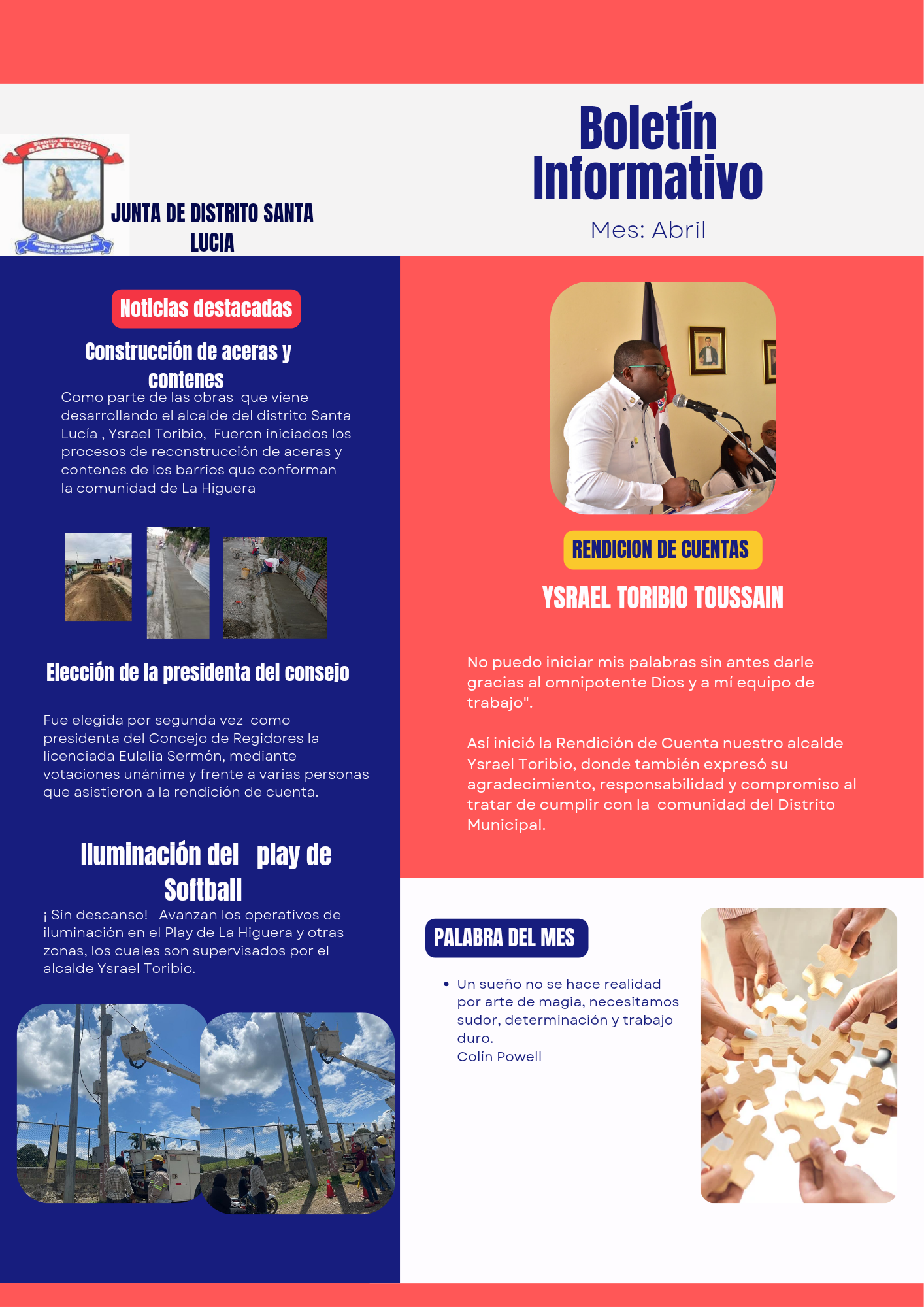 Boletín informativo Junta Municipal de Santa Lucia 1/2 Descargar1.17MB Fecha de subida: 10 mayo, 2023